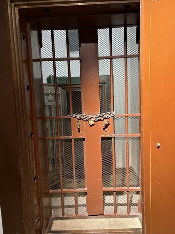 扉の奥にさらに見える扉は、以前、日本でその昔銀行だったと言う建物を見学した時に見たことがあるような重く堅固な扉です。