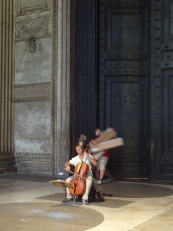 向かって左側に道があり、少し上り坂になっていて、パンテオンが立っている地面はそこよりも低いので道の横に壁と言う感じのものが造ってあって、確かに腰掛けている人たちをよく目にしますけれど、後ろに落ちるなんて普通考えないですものね...