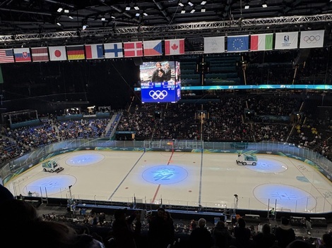 アイスホッケーの試合会場は2つあり、新設されたミラノ・サンタジュリア・アイスホッケーアリーナとミラノ・ロー・アイスホッケーアリーナで、私たちが見る試合は新しい方です。
