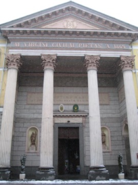 急ぐ人は、広場の真ん中を突っ切って歩いていましたが、広場を囲む建物の地上階部分は、ほとんどがポルティコ(柱廊)になっていて、雪が降っていても濡れずに歩けるのでした。 -