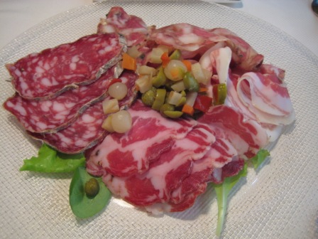 まずはサラミ盛り合わせを1皿頂いて、3人でつまみ、