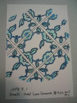 これも、床のタイルの模様です。修道院を改装したホテルは、部屋は概して狭いですし、設備もすごく整っているわけでは有りませんが、建物そのものや床や家具や調度品が素敵で、大好きです。