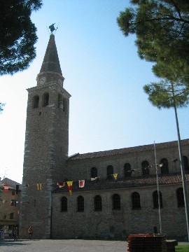 グラード滞在中のこの日、アクイレイアへ観光に出かけました。アクイレイアは本土にあり、グラードは潟の中の島で、そこを結ぶ直線の道路があります。