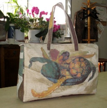 その後行ったグッビオの生地屋さんで見つけたカラバッジョの植物画タペストリー。