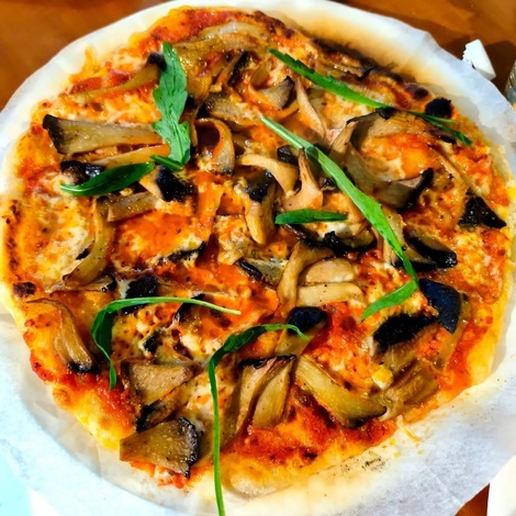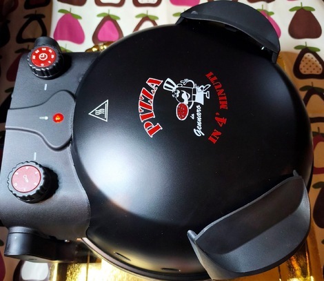 ミラノに住んでいる娘さんが恋人と二人で帰省し、お土産にこの卓上ピッツァ焼き機を持ってきてくれたのだそうです。