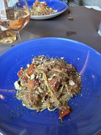 2人ともイカのラグーのパスタをオーダーしたのでヴィーノはロザート。