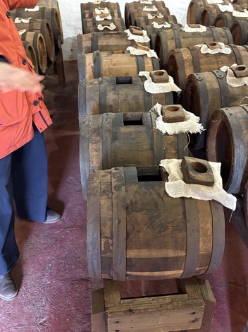樽の材質は、オーク、桜、栗、胡桃など様々な材質があり、それらに移し替えていくことで香りが変わっていくのだとか。