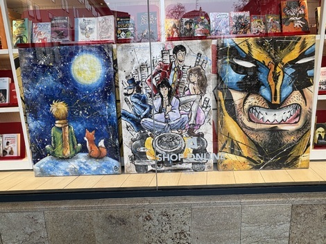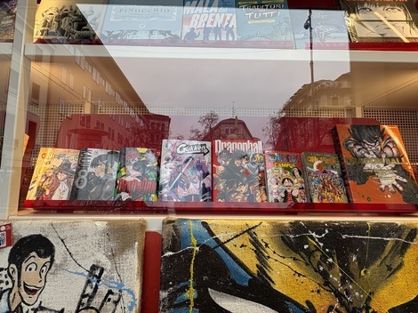 途中で見かけた本屋のウィンドウには、日本のコミックやそれらのポスター。