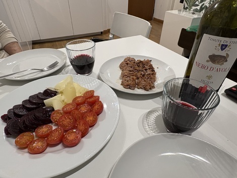 お店があまり開いていなかったので、ヴィーノとパンとガス水は、駅の方まで歩いてスーパーマーケットで買いました。(ついでに翌朝のヨーグルトなども)