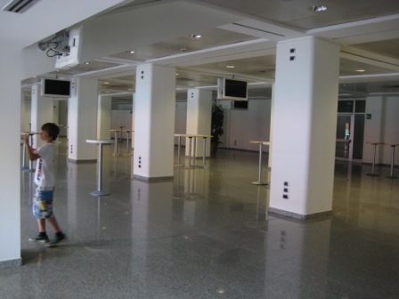 ここは、セレモニーがあるときの立食パーティーにも使われる場所だそうで、フィールドへと続く通路はここから続いていました。
