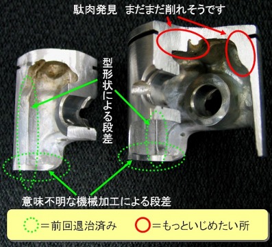 新品エンジンでも各ポート開口部のエッジ&掃気ポート周辺の粗加工、ピストンの各エッジを処理してあげるだけでも慣らしの短縮は、もちろん性能耐久性がグーンと伸びると感じています。