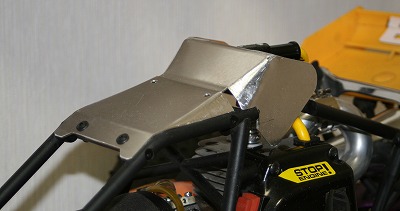 2作目は、ルーフ後端を12㎜程持ち上げ、その後ろからウイングを立ち上げる事としました。 またロールバーの補強や転倒時のルーフウィングの曲がりなどを考慮し、ロールバーサイドの穴への固定を行なう様にし、現在の形に進んできました。