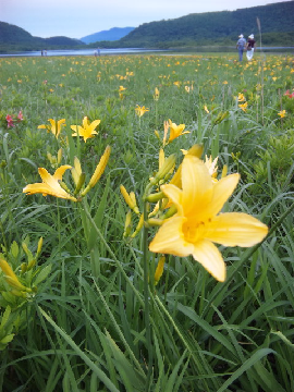 レンゲツツジとニッコーキスゲ、ワタスゲが風に揺れていた。icon