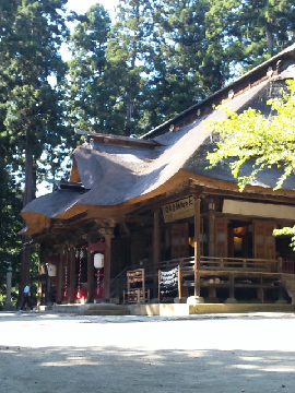 「Re:山形県徒然ドライブ」 熊野大社 本殿です。1200年の歴史を持つ、東北のお伊勢さんだそう。本殿の周りには27もの社があります。彫刻もみごと!本殿の裏の社の波に兎の彫り物の兎を三羽みつけられたら、願いが叶うとか。望遠鏡が欲しいわさ