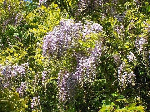 画像は、見事に手入れされた藤の代わりに、野生化して伸び放題の拙庭の藤で我慢してくだされ。(^o^;)