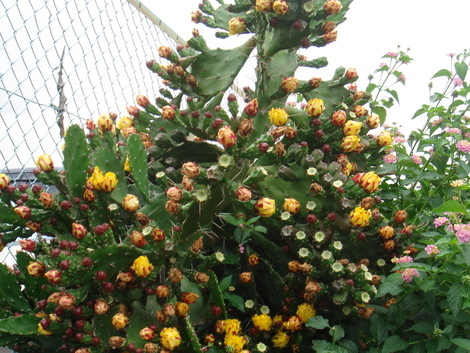 ・針状のとげがある。・花は黄色やピンク、白などいろいろある。