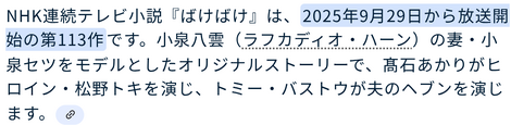 明日より NHK 朝ドラ「バケバケ」 が始まります。