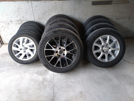 アルミホイール🛞のサイズは、かみさんのが14インチ、娘のが17インチ、自分のが15インチなんですけど、タイヤの幅が違うから娘のタイヤのデカさが目立ちますね。