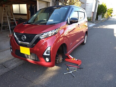 ミニバンだから車体が重くて、2トンのジャッキでやっと持ち上がリました。