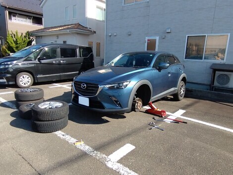 朝から晴れていい天気だったので、車のタイヤ交換をしました。