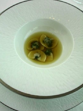「菜園からの有機野菜のラヴィオル その野菜のコンソメスープ仕立て」