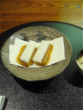 金沢の割烹で食べた「くちこ」(ナマコの卵巣を干した珍味)と若筍。