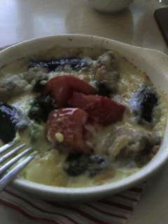 携帯画像で色が悪いですが、ジョナサンの牡蠣のドリアです。美味しかった、730kcal。