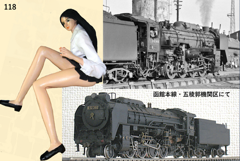 と初めて出会ったのは北海道へ渡ってすぐの五稜郭機関区だったわ。流石北海道と思ったのは、函館駅から五稜郭機関区迄、広々としたヤードが続いていたことなの。そして巨大で重厚なデコニ。First impression が強烈だったわ。お兄ちゃんがもっと背が高ければこのデコニさんに似ていたかも。脚が短めなところも良く似てるわ。このD52468はラストナンバーなのね。