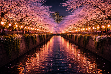 待ちに待ってました☆彡中目黒川沿いのあの見事な夜桜や、昼間の桜並木がみられ