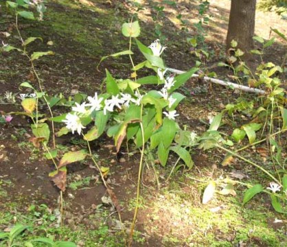 これも「殿ヶ谷戸庭園」で撮りました。帰宅後に調べたらちょっと珍しい白ホトトギスとかで、花びらの根元に黄色い斑点があるのが白ホトトギスで、これがないのがシロバナヤマジノホトトギス(白花山路のホトトギス)だそうです。庭園の中の木陰の薄暗い場所にひっそりと咲いていましたが黄色い斑点には気が付きませんでした庭園の掲示には白ホトトギスと記されていました。来年は気を付けて鑑賞・撮りたいと思います。h23.10.12. 白ホトトギスh23.10.12. 白ホトトギスの全体。