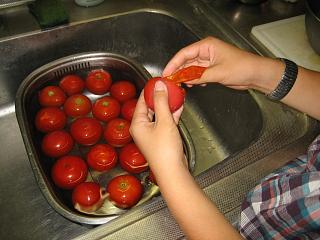 冷凍した凛々子を水に漬けて、皮を剥きます。