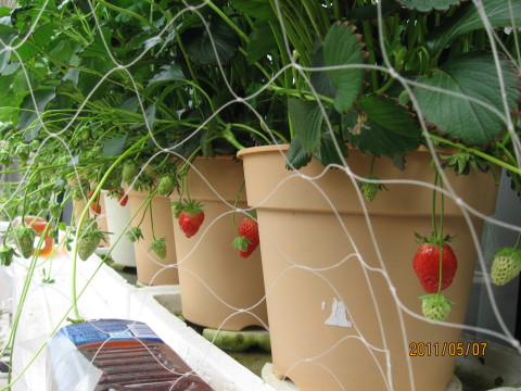 「イチゴの鉢植え、底面潅水栽培。(5/15)」