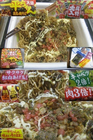 #明星 #一平ちゃん夜店の焼きそば #サクサク紅白あげ玉 #肉 #キャベツ #夜店ソース #からしマヨネーズ #焼きそば #カップ麺 #大満足