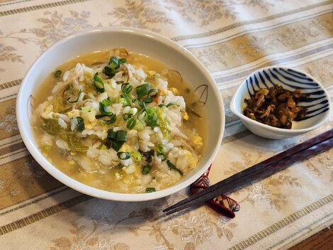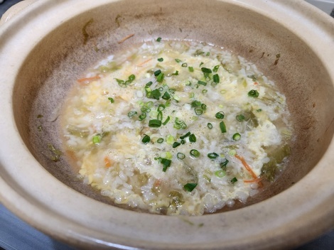☆火を止めてから溶き卵を加え、刻んだ小葱を散らす