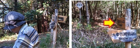下の写真は「今日はここまで」の場所でして、右写真の「矢印」には見ずらいですが「尾張冨士山頂 140m」とあります。