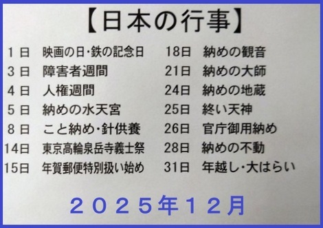 下の写真は健康体操会場にありました12月のカレンダーの一部をパチリです)