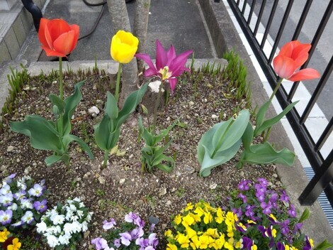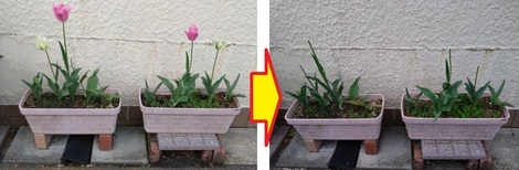今日は月曜日ですので、昨日少し抜きました「グリーンベルトの”げんこつ”」に、今朝そろそろ咲き終わりました「チューリップの花(3輪)」をつまみまして、我が家の可燃ごみなどを入れました「市の指定ビニール袋」を「可燃ごみ収集所」へ持ってまいりましたヨ!
