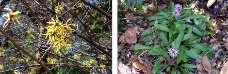 (下の写真はお散歩の行きにパチリしました「まんさく」と「ショウジョウバカマ」です)