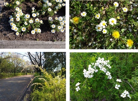 下の上段は「北口駐車場」から公園入口を入ってすぐこと頃でのもので、上段は「ノースポール」左下は「レンギョウ」で右下は「ゆきやなぎ」です。