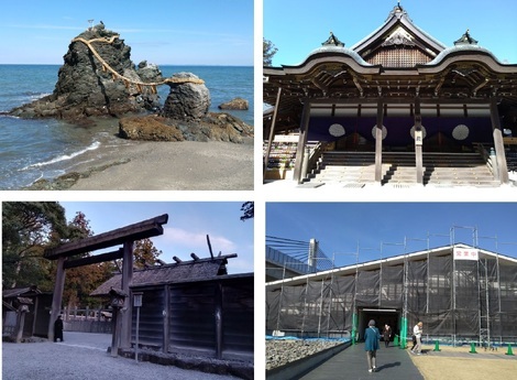 (下の写真は左上から「夫婦岩」「内宮(神楽殿)」「外宮」「片岡温泉」です)