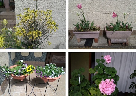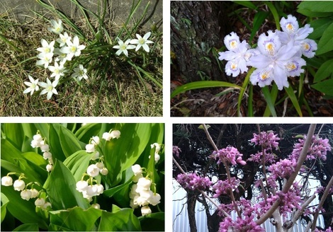 今日パチリしました花々は左上から「すみれ」「たんぽぽ」「ガマズミ」「山藤」です。