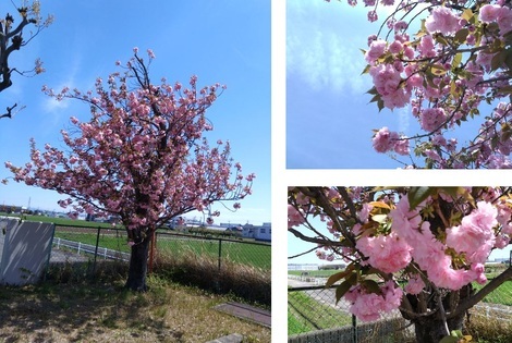 下の写真は温水プールの駐車場端に植えてあります「八重桜」でございますが、「きれい(満開状態)」ですヨ!)