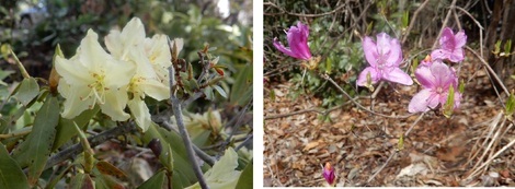 桜以外では「2種類のツツジ(下の左下が「ヒカゲツツジ」で右下が「ミツバツツジ」)」を撮りました。