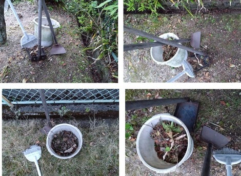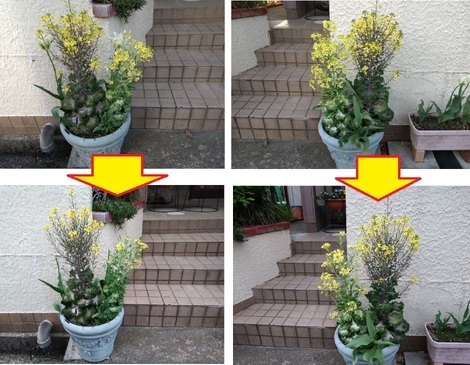 下の上段写真の右端はふーたんが生けていました「沈丁花の枝」で、左下は「挿し木準備」で、右下が「挿し木後」です。