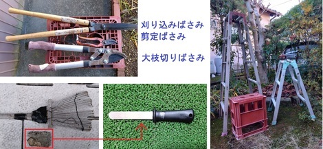 私は脚立に上った時「足を踏ん張った」ので「足腰が痛い」ですし、「剪定ばさみなど」で「右肩も痛い」でございましたァ~! フッ!