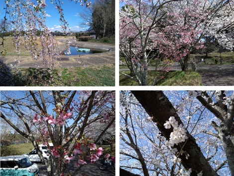 下の写真は駐車場でパチリしました「桜(上段)」と「花桃(下段)」です。