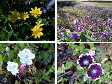 左上は「リュウキンカ(だと思います)」で、右上は「ショウジョウバカマ」です。