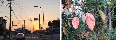下の写真の如く「夕日」が綺麗でしたし、「柿の葉の紅葉」も進んでまいりまshチアヨ!
