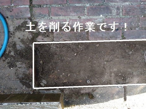 この作業は「土」はカーポートの出入りのために「カチカチ」に固まっていまして、削り取るのに時間が掛かりましたァ~! フッ!