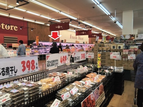 (下の写真が大型スーパーで、矢印がふーたんです)